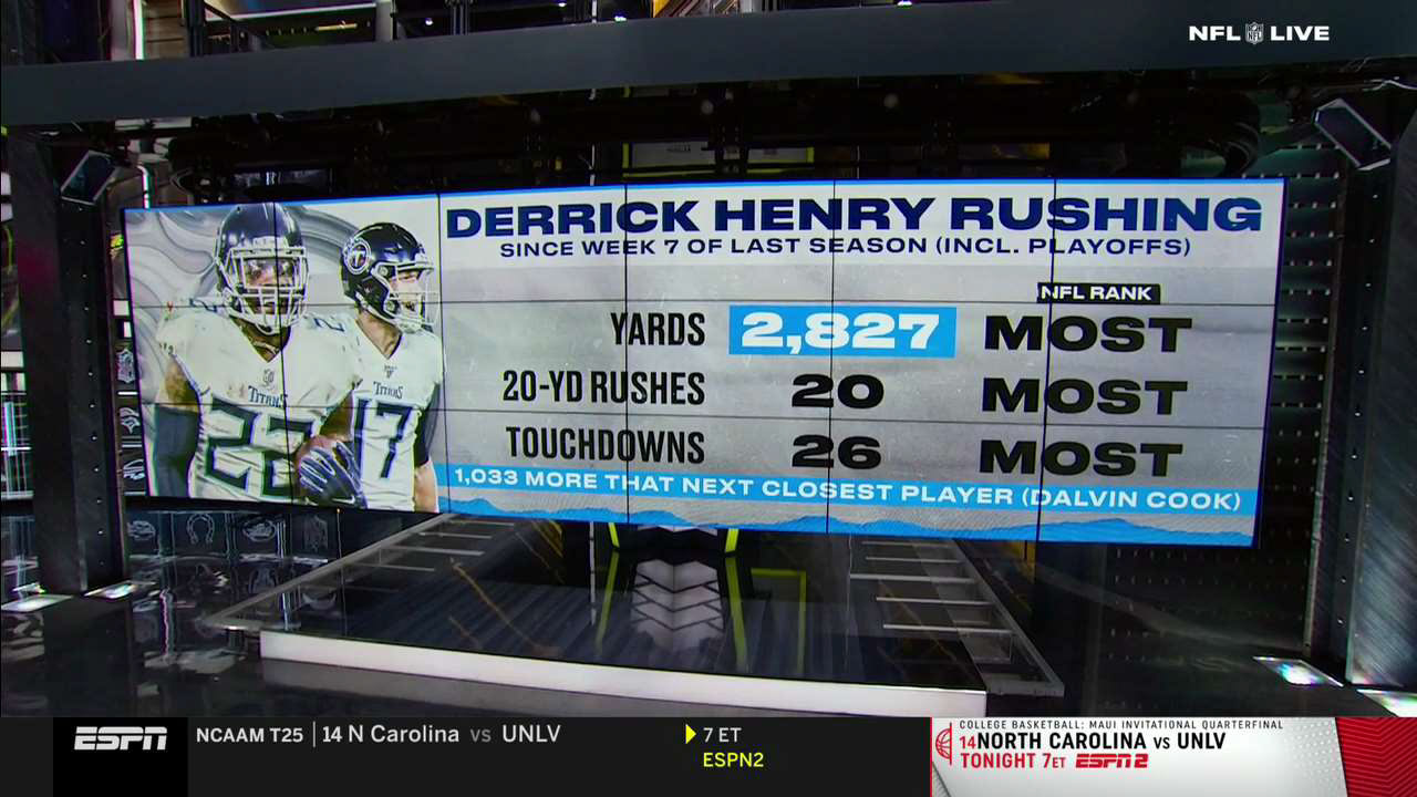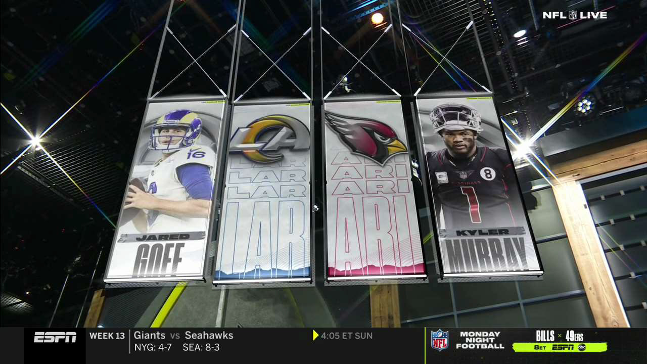 Starting at the end of 2019, I started my NFL journey. This was the biggest step in my ESPN career to that point. NFL Live was a show predominately worked on by Designer 1's, so being in an associate role and put on this show told me that I was trusted by my managers. It demonstrated that I can handle a heavier show load with added responsibilities. NFL Live is a pretty intense show. The new package launched that year featured many new design elements to experiment with. Studio W is also one of the more complicated studios at ESPN featuring well over 15 monitors. I was tasked with creating over 15+ graphics a show under tight deadlines, while putting my new design skills to work in order to create cohesive graphics. Taking on this new role, I was able to meet all expectations which launched me into the highlight of my ESPN career as lead show designer for that year's Sunday NFL Countdown.